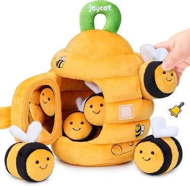 In short, the JoyCat Soft Baby Beehive & Sensory Bees set offers a wonderfully tactile, exploratory experience for babies around 6 to 12 months. It’s soft, safe, and structured enough to promote real early-learning moments while still being playful and fun.